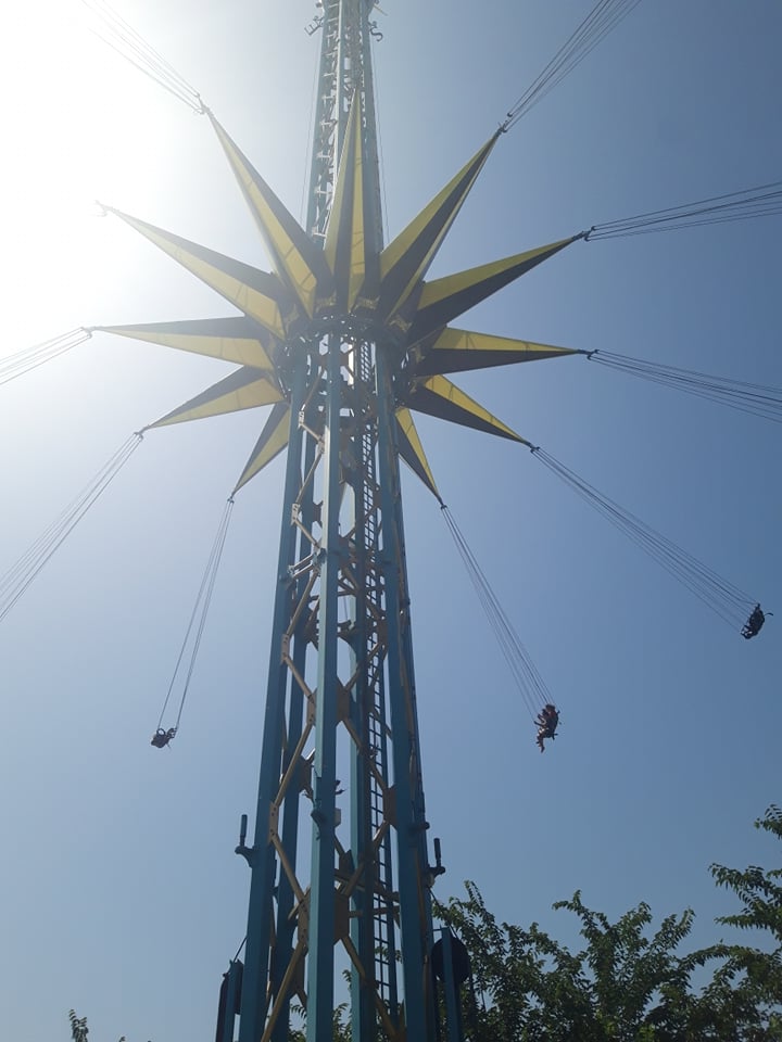 Μπήκαμε στο Star Flyer, το οποίο με ύψος που φτάνει τα 72 μέτρα, σε ανεβάζει στα ουράνια με χέρια και πόδια να αιωρούνται ελεύθερα και με ταχύτητα που φτάνει τα 30 χιλιόμετρα την ώρα.
