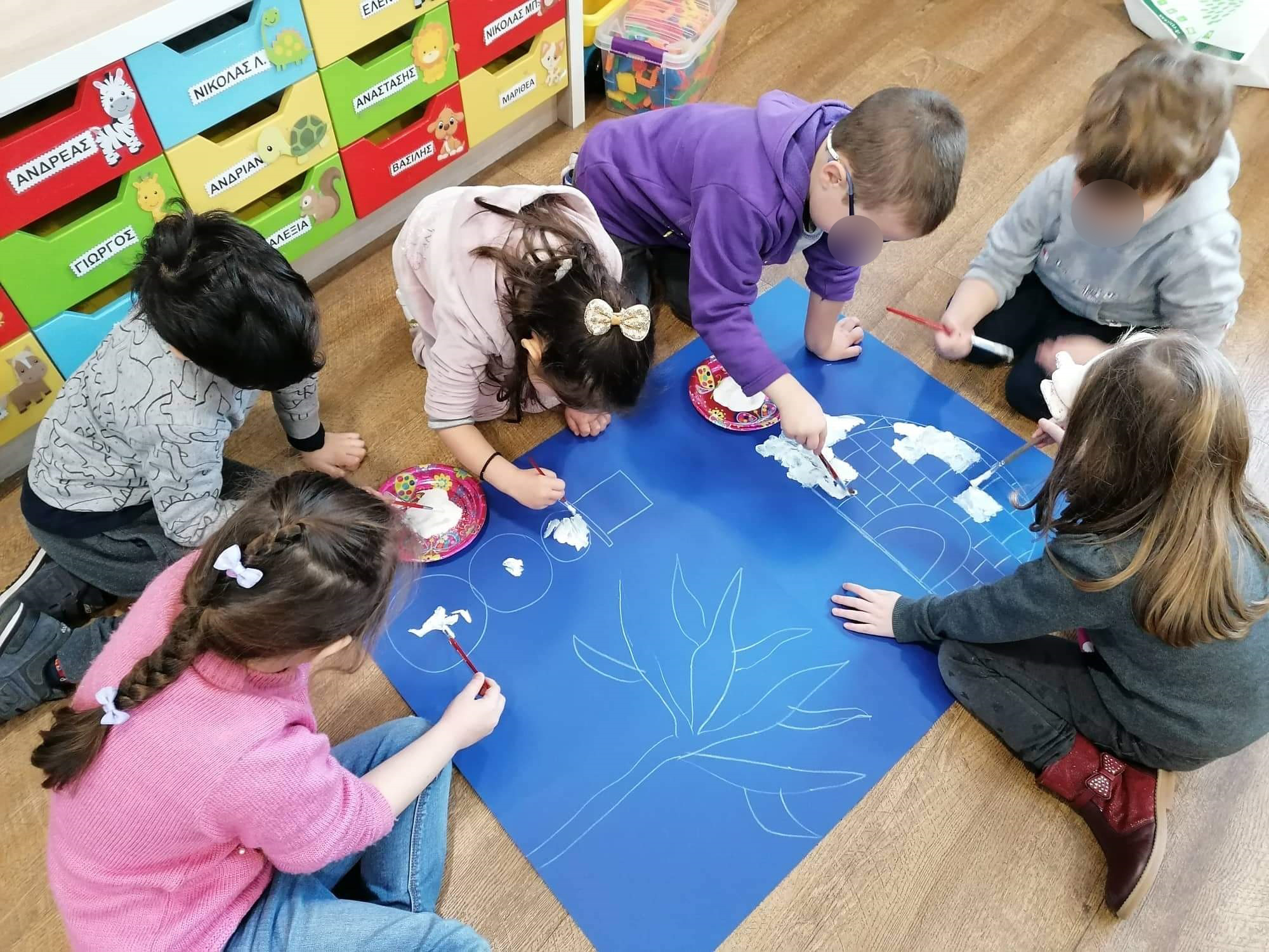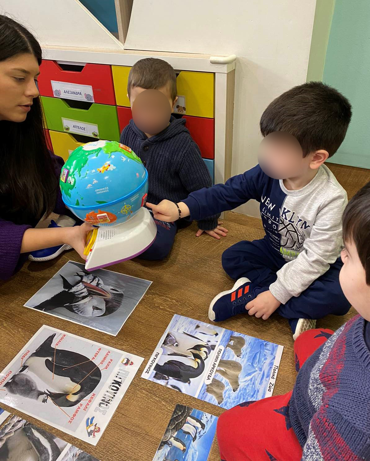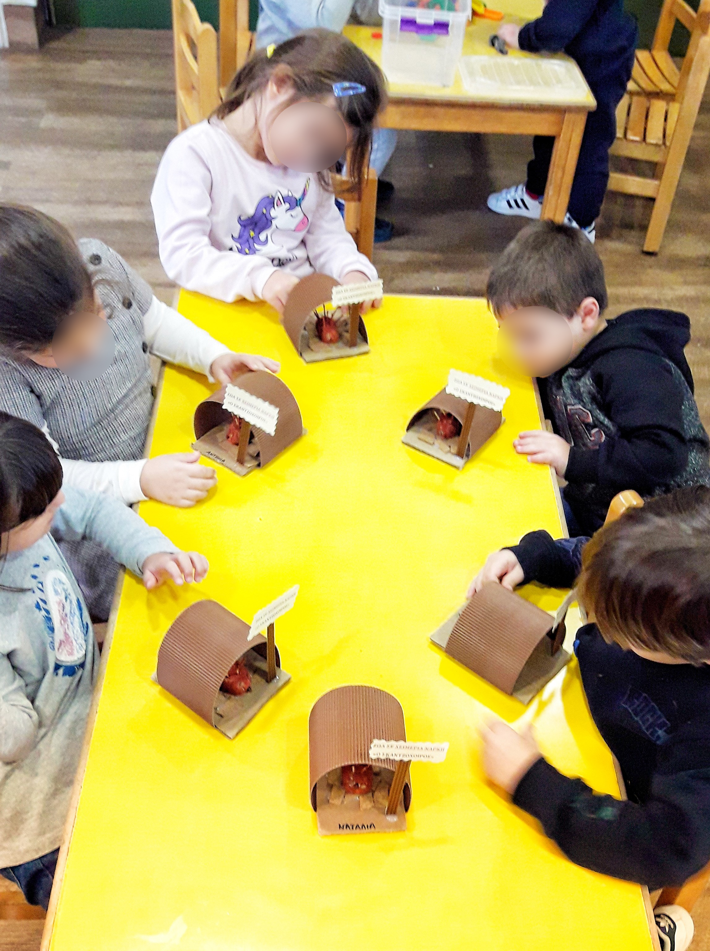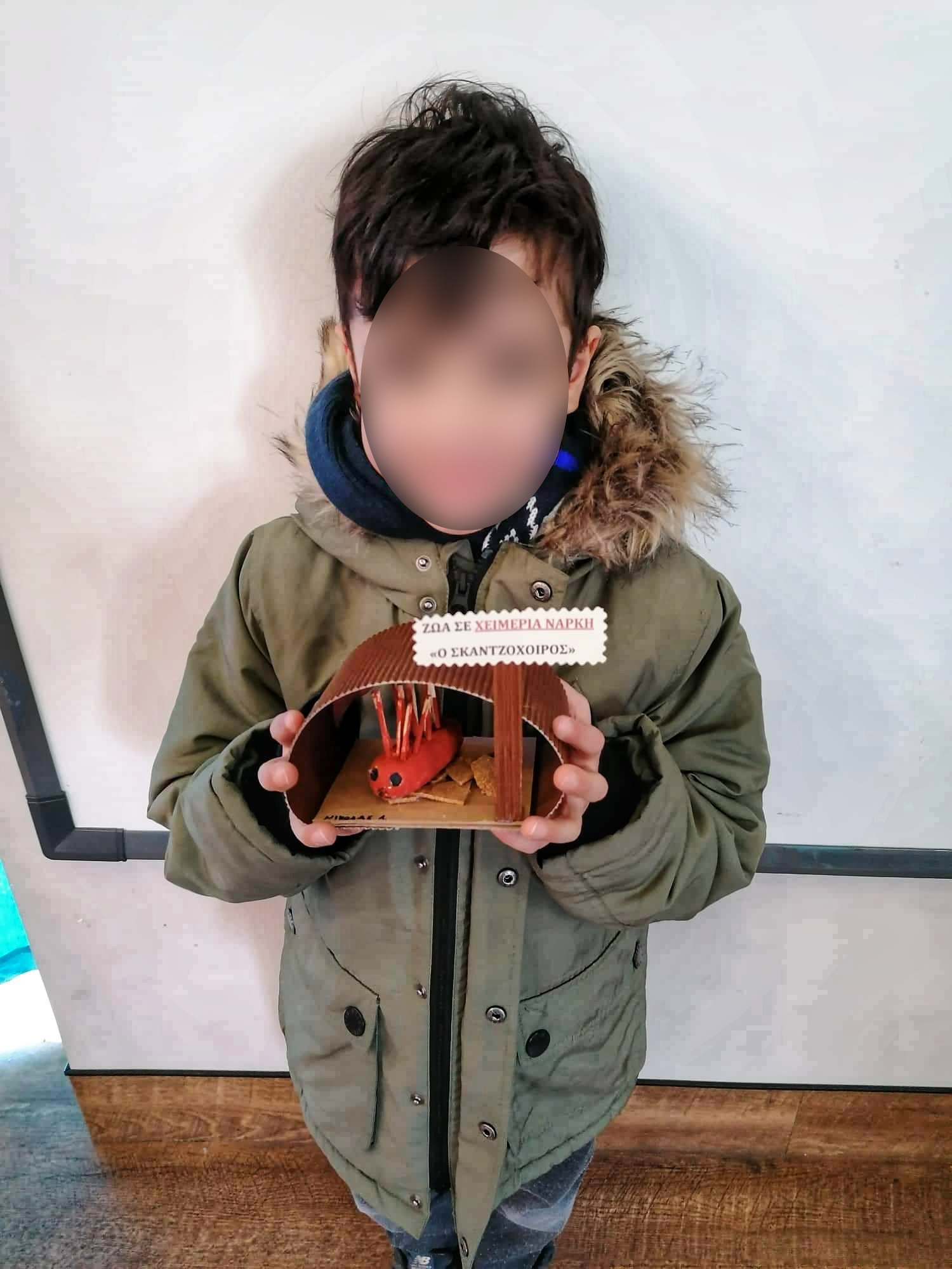 Γι’ αυτό οι μικροί μας μαθητές ασχολήθηκαν με τα ζώα των πάγων και έφτιαξαν μια ζεστή φωλίτσα για το σκαντζοχοιράκι που πέφτει σε χειμερία νάρκη τραγουδώντας: