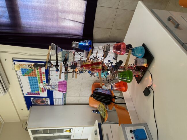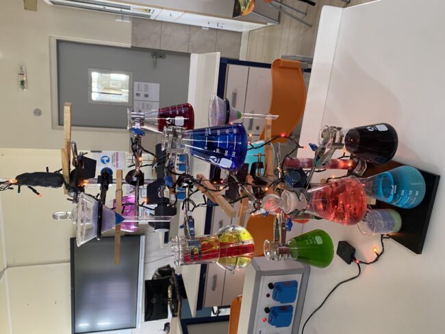 Οι μαθητές της Γ΄ Λυκείου, του προσανατολισμού Σπουδών Υγείας, καθώς και του εμβάθυνσης γνώσεων τμήματος της Β΄ Λυκείου έφτιαξαν με ιδιαίτερη χαρά και δημιουργικότητα ένα Χριστουγεννιάτικο δέντρο Χημείας .. ένα chemistree. Το αποτέλεσμα είναι εντυπωσιακό και στολίζει το εργαστήριο Φυσικών Επιστημών.