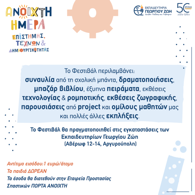 Ανοιχτή Ημέρα Επιστήμης Τεχνών Δημιουργικότητας