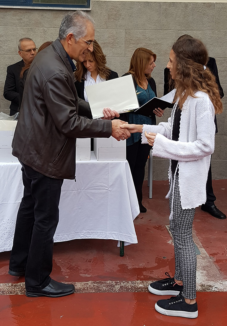 20161027_091341Στις 27 Οκτωβρίου 2016, ημέρα Πέμπτη, στις 8:30΄-9:30΄ π.μ. έγινε σε εορταστική ατμόσφαιρα η τελετή απονομής βραβείων και αριστείων των μαθητών/τριών που αρίστευσαν το σχολικό έτος 2015-2016. Στην τελετή παρευρέθηκαν και οι απόφοιτοι της Γ΄ Λυκείου, νυν φοιτητές.