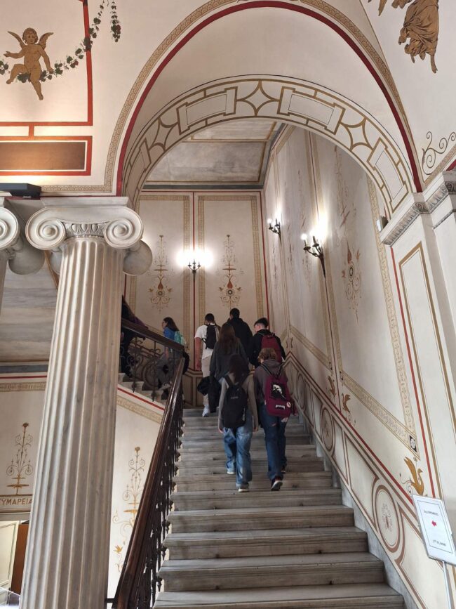 Οι μαθητές και οι μαθήτριες είχαν την ευκαιρία να περιηγηθούν σ’ ένα κτήριο με εντυπωσιακή διακόσμηση, δημιούργημα του αρχιτέκτονα Τσίλερ, και να δουν τη μόνιμη έκθεση που παρουσιάζει την Ιστορία του Νομίσματος από την αρχαιότητα μέχρι και σήμερα.