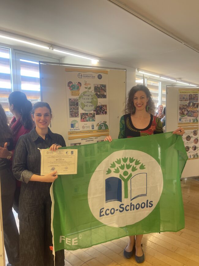 Οι δραστηριότητές μας υποβλήθηκαν και αξιολογήθηκαν από το Διεθνές Θεματικό Δίκτυο Περιβαλλοντικής Εκπαίδευσης «Οικολογικά Σχολεία». Είχαμε την τιμή και τη χαρά να βραβευτούμε για τις δράσεις μας και να παραλάβουμε την «Πράσινη Σημαία των Οικολογικών Σχολείων». Μαζί με εμάς παρέλαβε την «Πράσινη Σημαία» για τις περιβαλλοντικές του δράσεις και το Δημοτικό Σχολείο μας.