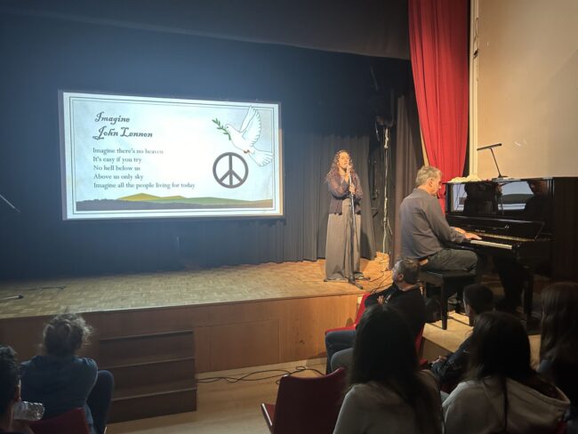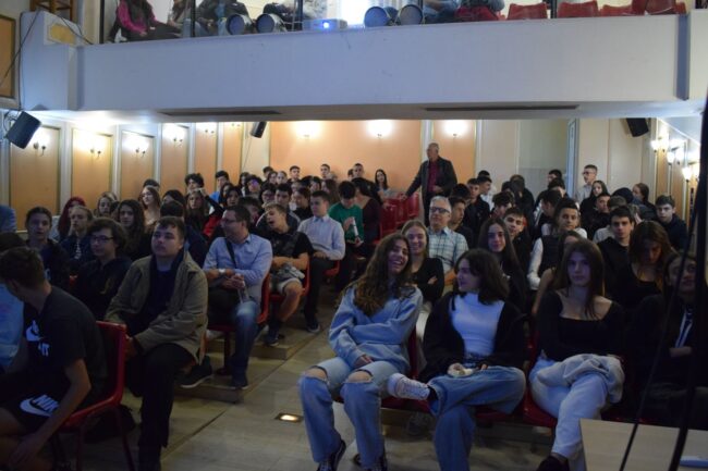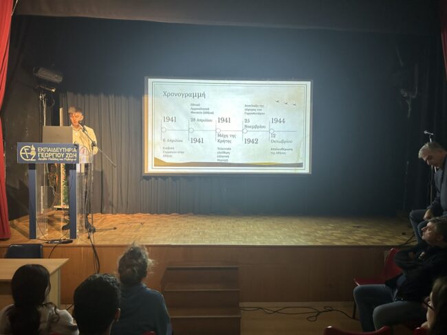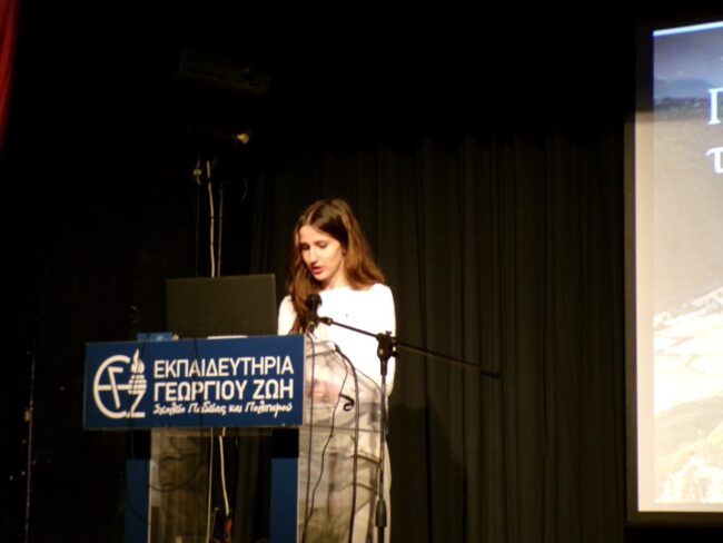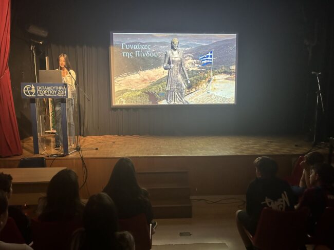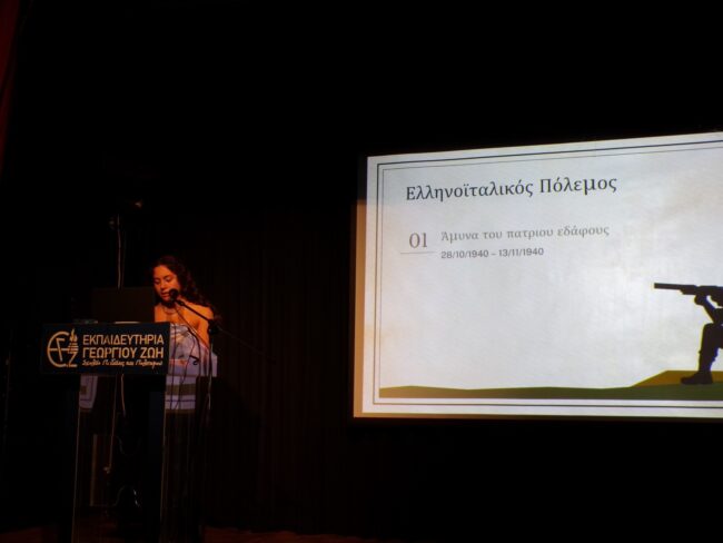 Τα παιδιά της Β’ Λυκείου μαζί με τους φιλολόγους τους κ. Αρχοντώνη Αθανάσιο & κα Μουρούτσου Μαρία παρουσίασαν το χρονικό της 28ης Οκτωβρίου 1940. Οι μαθητές του Γυμνασίου και του Λυκείου την παρακολούθησαν με ιδιαίτερο ενδιαφέρον, αντιλήφθηκαν τη γενναιότητα των Ελλήνων και τη σημασία της ειρήνης.