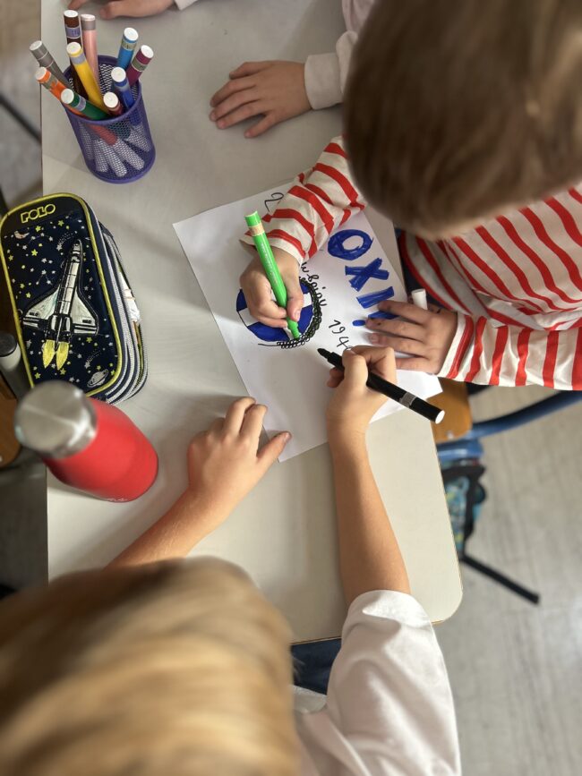 Τη Δευτέρα 27 Οκτωβρίου, οι μαθητές της Β’ και της Ε’ Δημοτικού ένωσαν τις δυνάμεις τους για να τιμήσουν την εθνική μας επέτειο!