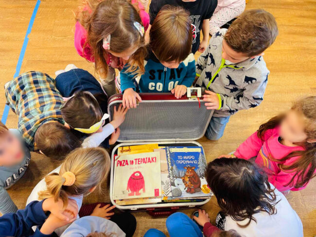 “Κόκκινη κλωστή δεμένη”…ονόμασαν τα Προνηπιάκια τη βαλίτσα γεμάτη γνώσεις, με την οποία ξεκίνησαν οι δράσεις φιλαναγνωσίας στο πλαίσιο του προγράμματος: “Οι μικροί βιβλιοφάγοι”. Παράλληλα, με μεγάλη χαρά υποδέχτηκαν τη συγγραφέα Μαρίνα Γιώτη, η οποία με παιγνιώδεις δράσεις μας ταξίδεψε στον κόσμο των “φλαφ”!