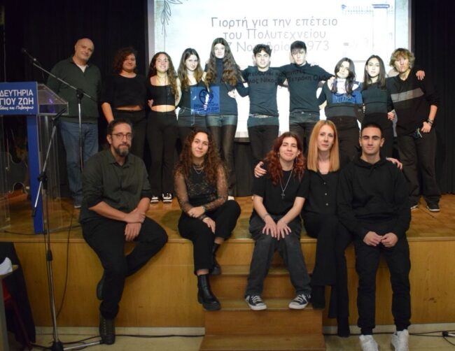 Οι μαθητές του Λυκείου μας παρουσίασαν το χρονικό της εξέγερσης, την κατάλυση της χούντας με την αποκατάσταση της Δημοκρατίας και την εισβολή των Τούρκων στην Κύπρο.Τη γιορτή πλαισίωσαν τραγούδια, βίντεο με μαρτυρίες και απαγγελία από τους μαθητές του ποιήματος ”Φοβάμαι” του Μανώλη Αναγνωστάκη. Μαθητές και εκπαιδευτικοί συγκινήθηκαν με το “Γελαστό παιδί” που τραγούδησε μαθήτριά μας από τη Γ’ Λυκείου και με τον “Παλιάτσο” που τραγούδησε η χορωδία.