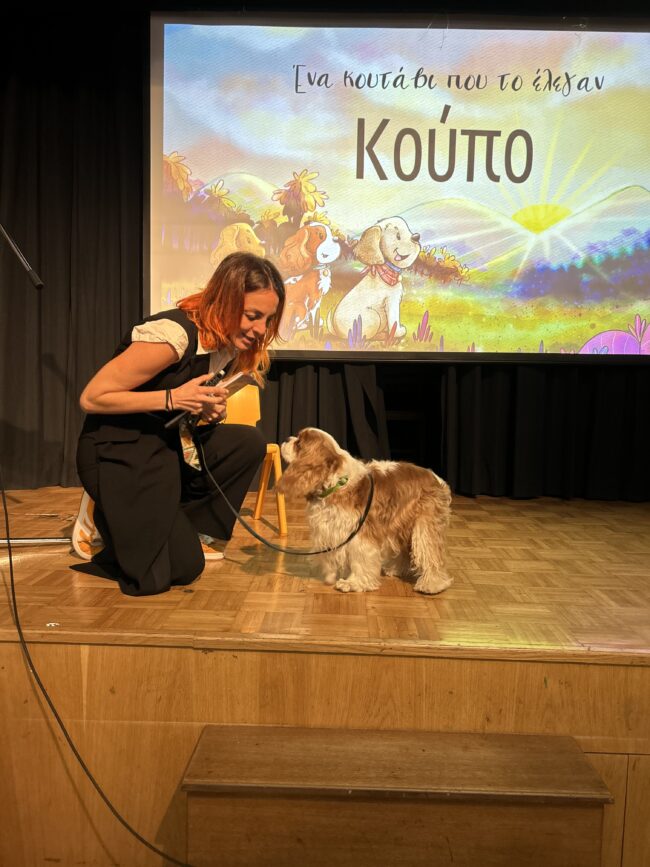Την Τετάρτη 27 Νοεμβρίου πραγματοποιήθηκε η παρουσίαση ενός νέου παιδικού βιβλίου στους μαθητές της Β’ Δημοτικού με τίτλο «’Ενα κουτάβι που τον έλεγαν Κούπο» της Ελένης Γεωργακοπούλου (Κatt Sway). Η συγγραφέας συζήτησε με τα παιδιά για τα συναισθήματα και όλοι μαζί είχαν την ευκαιρία να γνωρίσουν τον Κούπο και να παίξουν μαζί του.