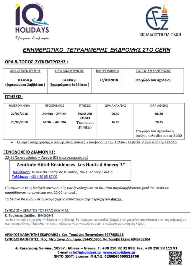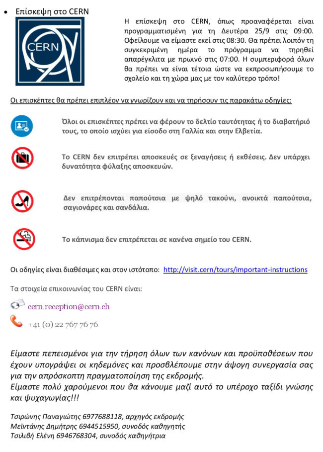Ενημερωτικό εκδρομής στο CERN