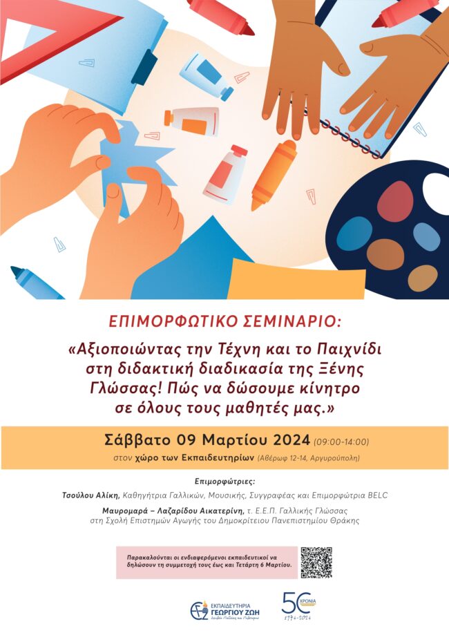 Επιμορφωτικό σεμινάριο : Αξιοποιώντας την Τέχνη και το Παιχνίδι στη διδακτική διαδικασία της Ξένης Γλώσσας!