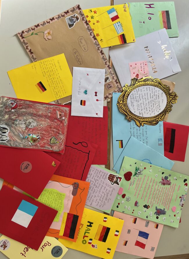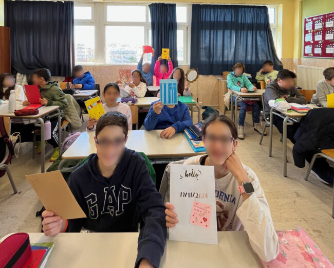 Στο πλαίσιο του Ευρωπαϊκού Προγράμματος e-twinning με θέμα Εκπαιδευτικά Συστήματα – Κοινά σημεία και διαφορές, οι Μαθητές της Στ’ Δημοτικού των Εκπαιδευτηρίων μας επικοινωνούν στα γαλλικά με Ιταλούς και Γερμανούς Μαθητές. Πρώτος σταθμός στην γνωριμία τους αποτελεί η δημιουργία γραμμάτων-καρτών όπου παρουσιάζουν τον εαυτό τους, τα ενδιαφέροντά τους και τα αγαπημένα τους μαθήματα. Τα γράμματα των Μαθητών μας έχουν ήδη σταλεί στα συνεργαζόμενα σχολεία της Ιταλίας και Γερμανίας αντίστοιχα.