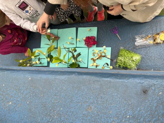 Στο τέλος, όλοι μαζί – μικροί και μεγάλοι – φτιάξαμε τον δικό μας φανταστικό κήπο , χρησιμοποιώντας υλικά της φύσης και μεταμορφώνοντας την αυλή μας σε έναν κόσμο γεμάτο φαντασία και δημιουργικότητα .