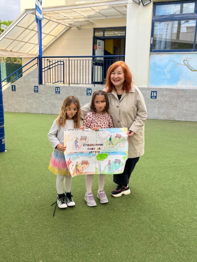 Μας μίλησε με τρυφερότητα για το υπέροχο βιβλίο της «Είπε ο κήπος» , απάντησε στις ερωτήσεις μας με χαμόγελο και αγάπη και δέχτηκε με συγκίνηση τα μικρά δωράκια που της είχαμε ετοιμάσει με τόσο ενθουσιασμό.