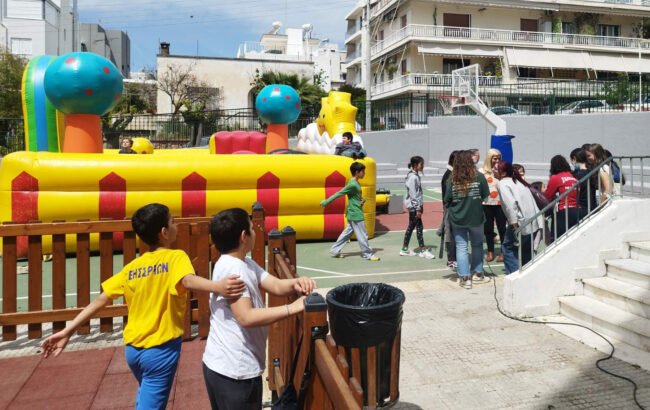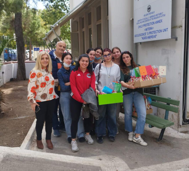 Τις προηγούμενες ημέρες μαθητές του Λυκείου επισκέφθηκαν και πρόσφεραν στα φιλοξενούμενα παιδιά τη μονάδας προστασίας ανηλίκων «Παιδόπολις – Άγιος Ανδρέας» γλυκίσματα. Οι μαθητές μας είχαν την ευκαιρία να συναντήσουν, να συνομιλήσουν και να παίξουν με τα παιδιά.