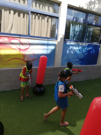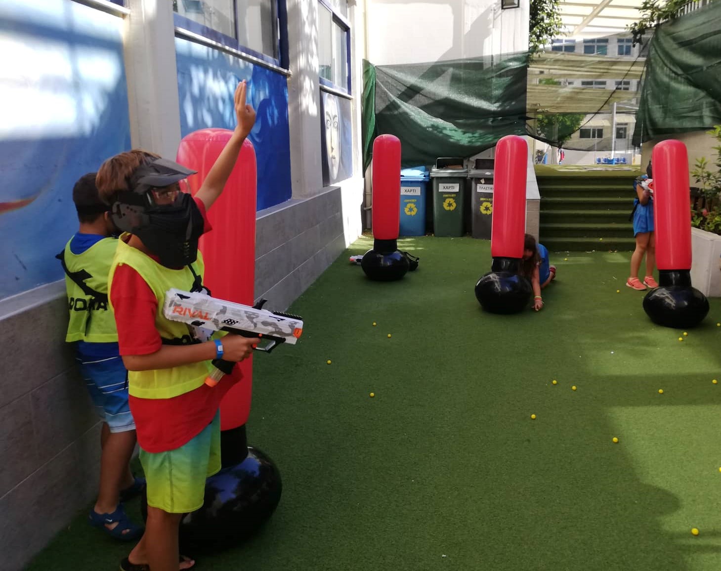 Tα παιδιά του Summer Camp είχαν την ευκαιρία να παίξουν από ένα απλό παιχνίδι ανταγωνισμού με σκοποβολή μέχρι να δοκιμάσουν τις δυνάμεις τους σε μάχη με πίστα φουσκωτών, χωρισμένοι σε ομάδες. Ήταν μια όμορφη εμπειρία και πραγματικά τα παιδιά το διασκέδασαν με την καρδιά τους!