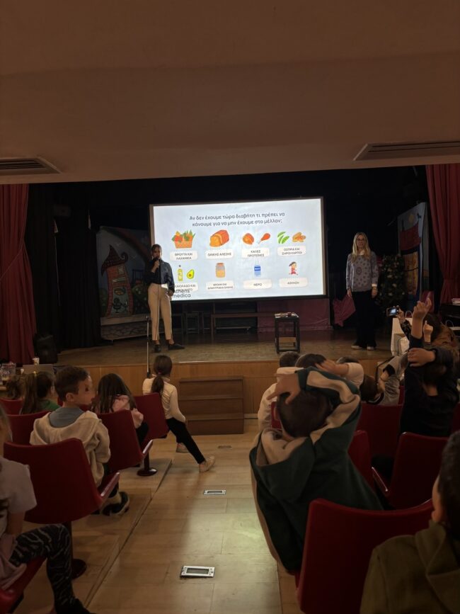 Στο πλαίσιο των «Εργαστηρίων Δεξιοτήτων» που εστιάζει στην υγιεινή διατροφή, οι μαθητές και οι μαθήτριες της Α Δημοτικού υποδέχτηκαν στον χώρο του Σχολείου το εξειδικευμένο κέντρο Διαβήτη και Μεταβολισμού «Athens Medica». Τα παιδιά ενημερώθηκαν για την αξία της υγιεινής διατροφής, άκουσαν χρήσιμες συμβουλές και προτάσεις για την υγιεινή διατροφή, ζωγράφισαν το «ιδανικό υγιεινό πιάτο» και έπαιξαν ένα ομαδικό παιχνίδι.