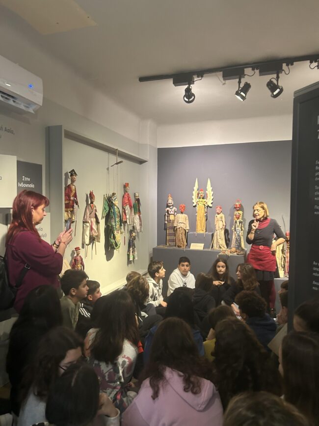 Οι μαθητές/τριες περιηγήθηκαν στο χώρο του Μουσείου και είχαν την ευκαιρία να γνωρίσουν την τέχνη του Κουκλοθέατρου μέσα από το Εργαστήριο Κατασκευής και Εμψύχωσης Κούκλας. Τέλος παρακολούθησαν μια παράσταση κουκλοθέατρου “Οι κούκλες λένε τη δική τους ιστορία”.