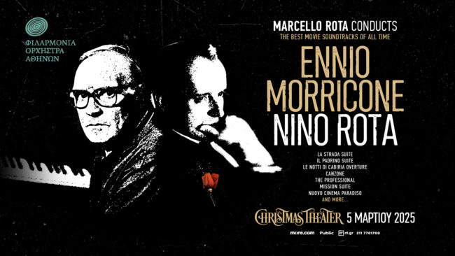 Την Τετάρτη 5/3 υπό τη διεύθυνση του μαέστρου Marcello Rota, θα ερμηνεύσουν πασίγνωστα έργα από ταινίες του κινηματογράφου των συνθετών Nino Rota και Ennio Morricone!