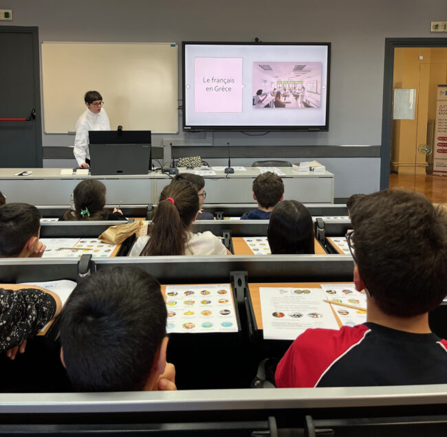 Ξεναγηθήκαμε στη βιβλιοθήκη Octave Merlier, ανακαλύψαμε τους θησαυρούς της και γίναμε μικροί βιβλιοθηκάριοι για μια μέρα! Στη συνέχεια, συμμετείχαμε σε ένα δημιουργικό εργαστήριο για τη Γαλλοφωνία και την ιστορία του Ινστιτούτου, ενώ ολοκληρώσαμε την επίσκεψή μας με ένα διαδραστικό ερωτηματολόγιο για το μέλλον του πλανήτη μας.