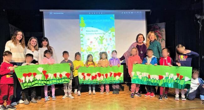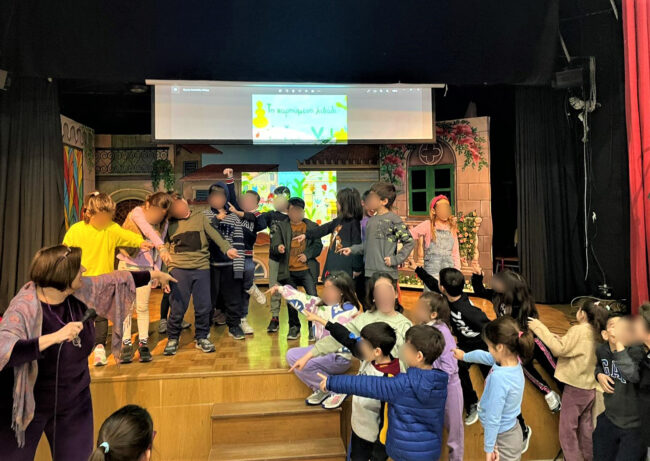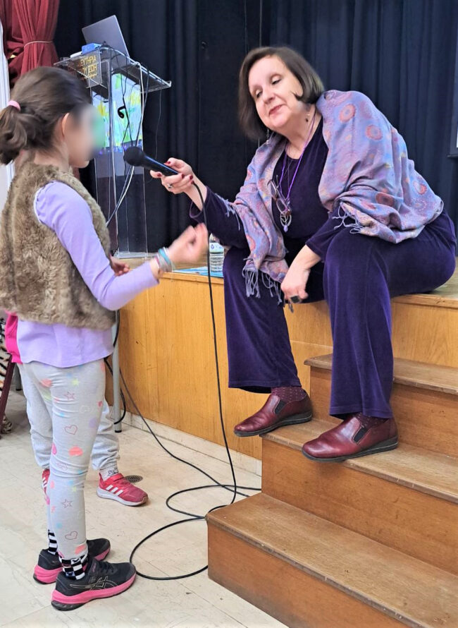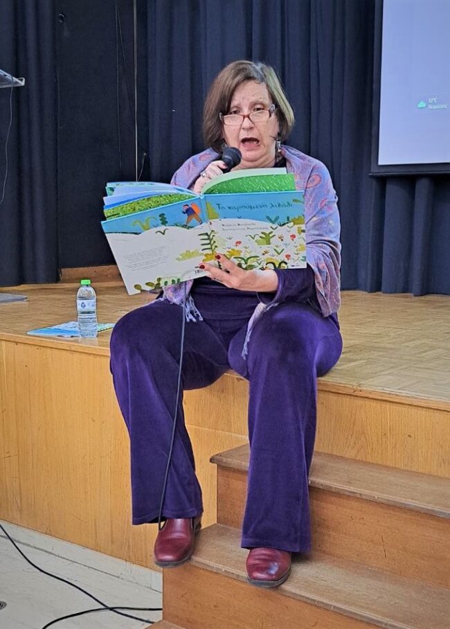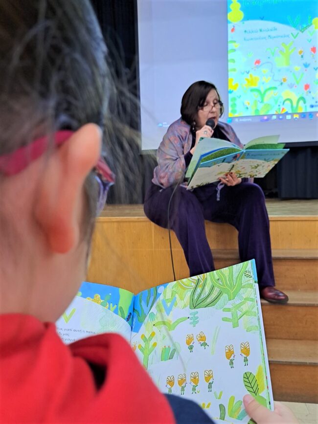 Ήρθε η σειρά των μαθητών της Α’ Δημοτικού να υποδεχτούν τη συγγραφέα του βιβλίου «Το χαρούμενο λιβάδι» στη Γιορτή των Βιβλίων, κ. Φυλλιώ Νικολούδη. Τα παιδιά είχαν την ευκαιρία να συζητήσουν με τη συγγραφέα για το βιβλίο, να δραματοποιήσουν σκηνές από την ιστορία εκφράζοντας με ποικίλους τρόπους τα συναισθήματά τους και στη συνέχεια γέμισαν ένα λιβάδι με μαργαρίτες και παπαρούνες που είχαν ετοιμάσει στην τάξη. Για το τέλος η συγγραφέας δεν παρέλειψε να υπογράψει τα βιβλία των παιδιών. Ήταν μία ξεχωριστή εμπειρία για τους μικρούς μας αναγνώστες!