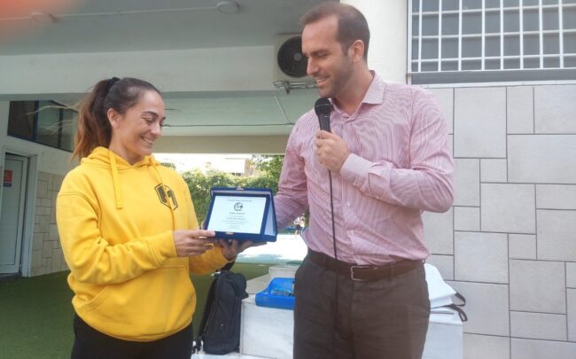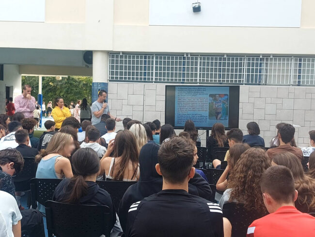 Στο πλαίσιο των εκδηλώσεων για την Πανελλήνια Ημέρα Σχολικού Αθλητισμού τίμησε με την παρουσία της το Σχολείο μας η χρυσή Ολυμπιονίκης, Αθανασία Τσουμελέκα.