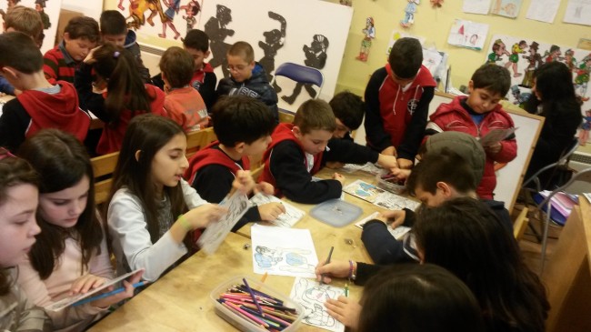 Την Τρίτη, 27 Ιανουαρίου 2015, οι μαθητές της Γ’ Δημοτικού παρακολούθησαν την παράσταση Καραγκιόζη: “Θησέας και Μινώταυρος” του Θεάτρου Σκιών Αθανασίου. Τα παιδιά διασκέδασαν με τα αστεία του ξυπόλητου καμπούρη, συμμετέχοντας στις περιπέτειες του ήρωα, ο οποίος έφτασε μέχρι την Κρήτη, για να παλέψει με τον Μινώταυρο. Μετά το τέλος της παράστασης τα παιδιά έμαθαν μερικά από τα μυστικά του Θεάτρου Σκιών, ενώ παράλληλα κατασκεύασαν τη δική τους φιγούρα. Καραγκιόζη.