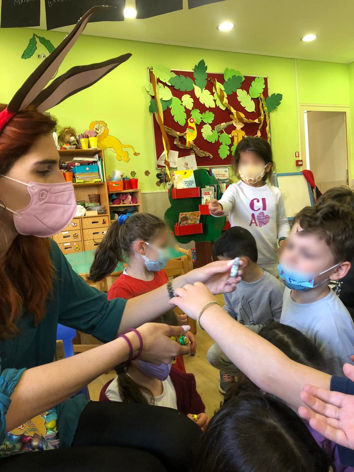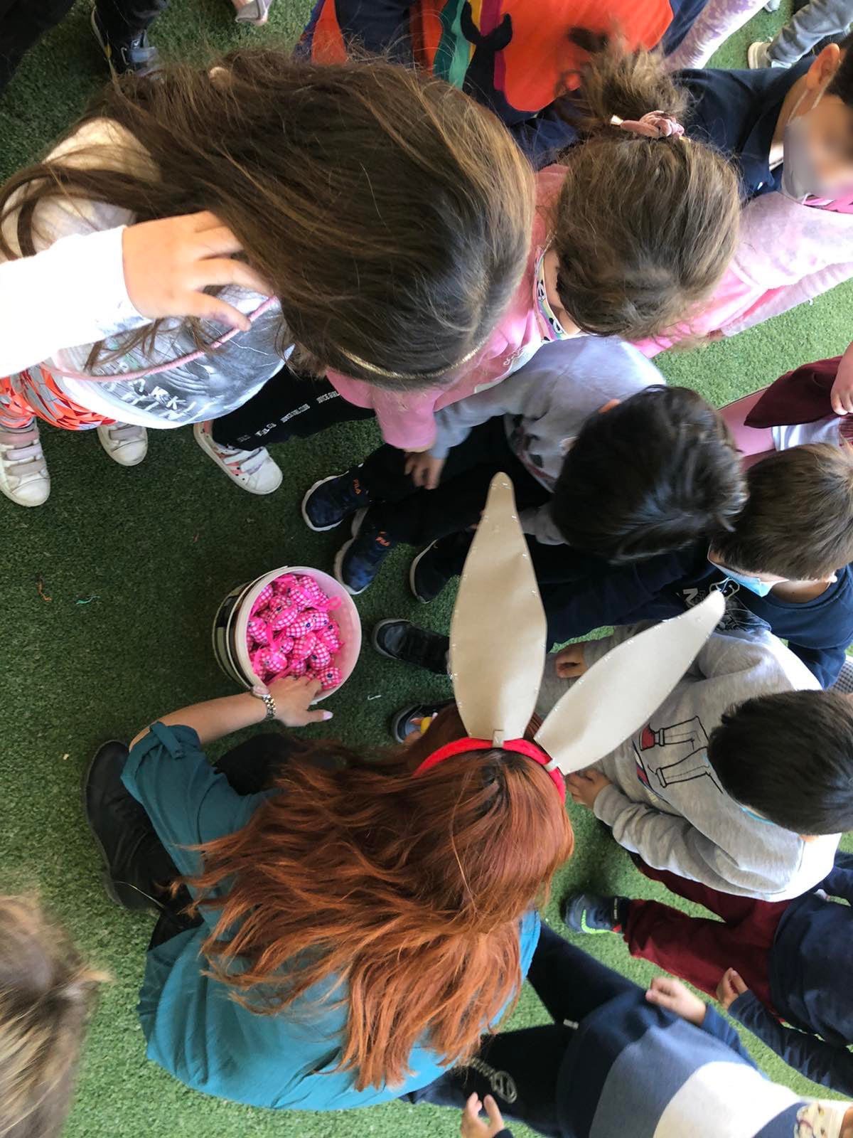 Το Easter Bunny επισκέφτηκε το Νηπιαγωγείο μας και έκρυψε αυγά για να τα βρουν οι μικροί μας μαθητές. Ακολουθώντας τις οδηγίες στα αγγλικά καταφέραμε να μαζέψουμε όλα τα αυγά και έτσι πήραμε το κέρασμα που μας έφερε το Easter Bunny μαζί με τα πασχαλινά μας δώρα.