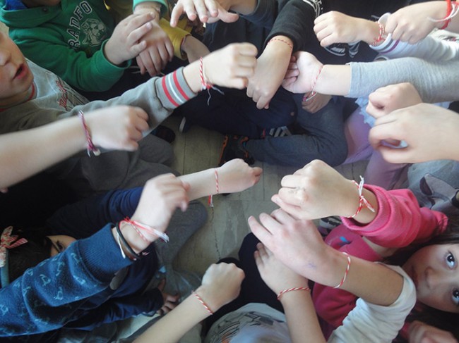 Τα πρωτάκια καλωσόρισαν τον Μάρτη με το γνωστό έθιμο. Έπλεξαν με τις δασκάλες τους τα «μαρτάκια», τα βραχιολάκια με την ασπροκόκκινη κλωστή που, σύμφωνα με την παράδοση, τα προστατεύει από τον πρώτο ήλιο της Άνοιξης.