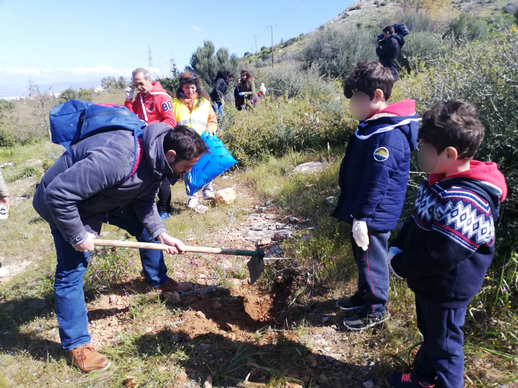 Οι μικροί μας μαθητές με χαρά προσέφεραν τα μέγιστα στον Υμηττό μας. Συγκεκριμένα, έσκαψαν λάκκους με τη βοήθεια των εθελοντών και με συνοδεία των γονέων, φύτεψαν νέα δενδρύλλια και μετέφεραν νερό, για να τα ποτίσουν. Στη συνέχεια συνέβαλαν στον καθαρισμό όλου του ορεινού μετώπου και πότισαν τις ήδη υπάρχουσες δενδροφυτεύσεις.