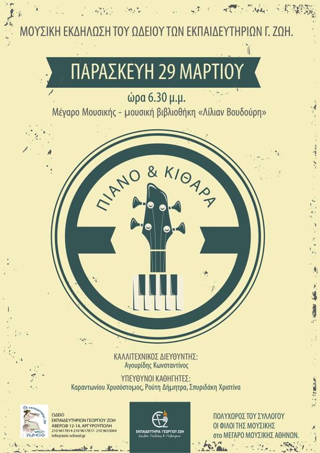 Με ιδιαίτερη χαρά σας προσκαλούμε στη μουσική εκδήλωση του Ωδείου του Σχολείου μας.