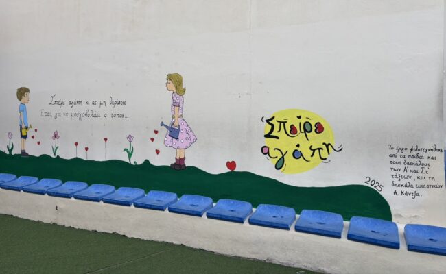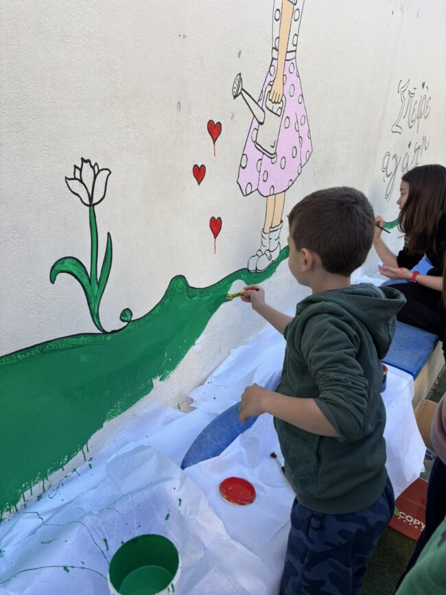 Με έμπνευση, συνεργασία και πολλή χαρά , οι μαθητές της Α’ και της ΣΤ’ τάξης ενώθηκαν για να δημιουργήσουν κάτι ξεχωριστό . Διάλεξαν έναν κενό τοίχο του σχολείου μας, πήραν πινέλα και χρώματα και άφησαν τη φαντασία τους ελεύθερη.