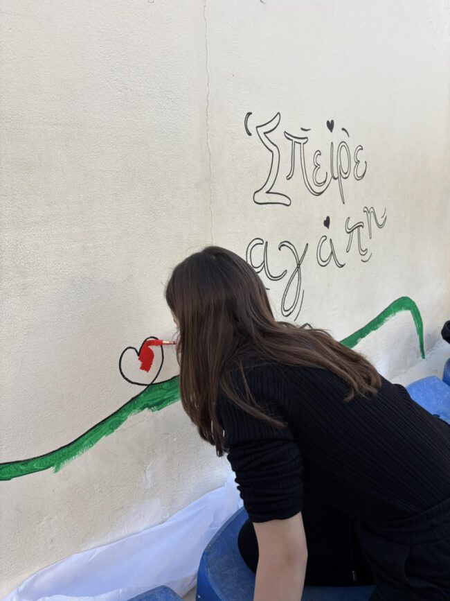 Με την πολύτιμη καθοδήγηση των εκπαιδευτικών των τάξεων και της εικαστικού μας, Αγάπης Κάντζα, το έργο τους πήρε ζωή. Ένας τοίχος γεμάτος χρώματα, σχέδια και μηνύματα αγάπης στέκεται πλέον εκεί, για να θυμίζει σε όλους μας τη δύναμη της δημιουργίας και της συνεργασίας.