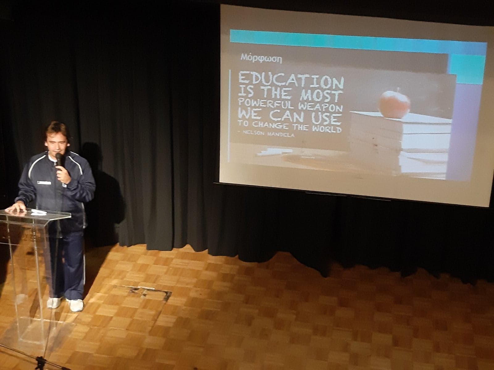 Σήμερα, στο θέατρο του Σχολείου μας, συνομίλησε με τους μαθητές μας, απάντησε σε ερωτήσεις τους, έδωσε μαθήματα ζωής και σίγουρα … κατέκτησε τις καρδίες μας!