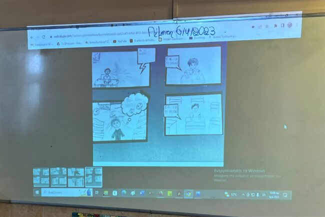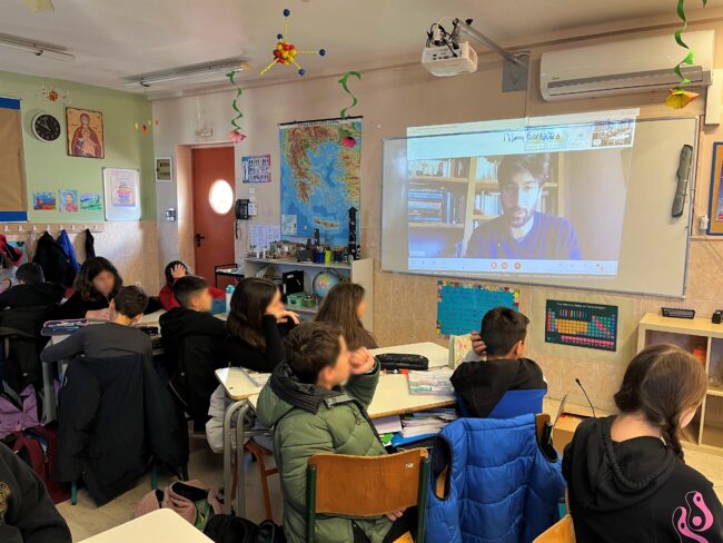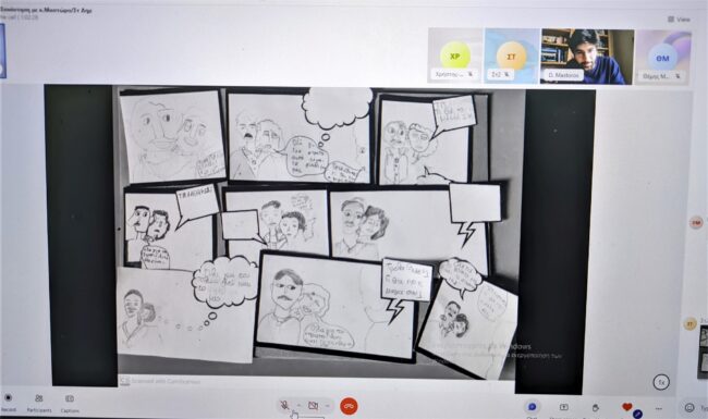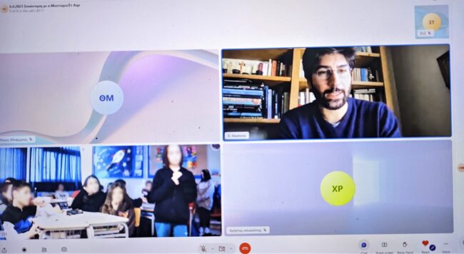 Στο πλαίσιο της Γιορτής των βιβλίων οι μαθητές της Στ’ Δημοτικού συνάντησαν διαδικτυακά τον κ. Δημήτρη Μαστώρο, εικονογράφο της επιτυχημένης έκδοσης graphic novel του εμβληματικού βιβλίου της Άλκης Ζέη με τίτλο: «Ο Μεγάλος περίπατος του Πέτρου». Οι μαθητές συνομίλησαν με τον κ. Μαστώρο, έθεσαν ερωτήσεις και παρουσίασαν στον εικονογράφο δικές τους εικονογραφήσεις από αποσπάσματα του βιβλίου που έχουν διαβάσει στην τάξη.