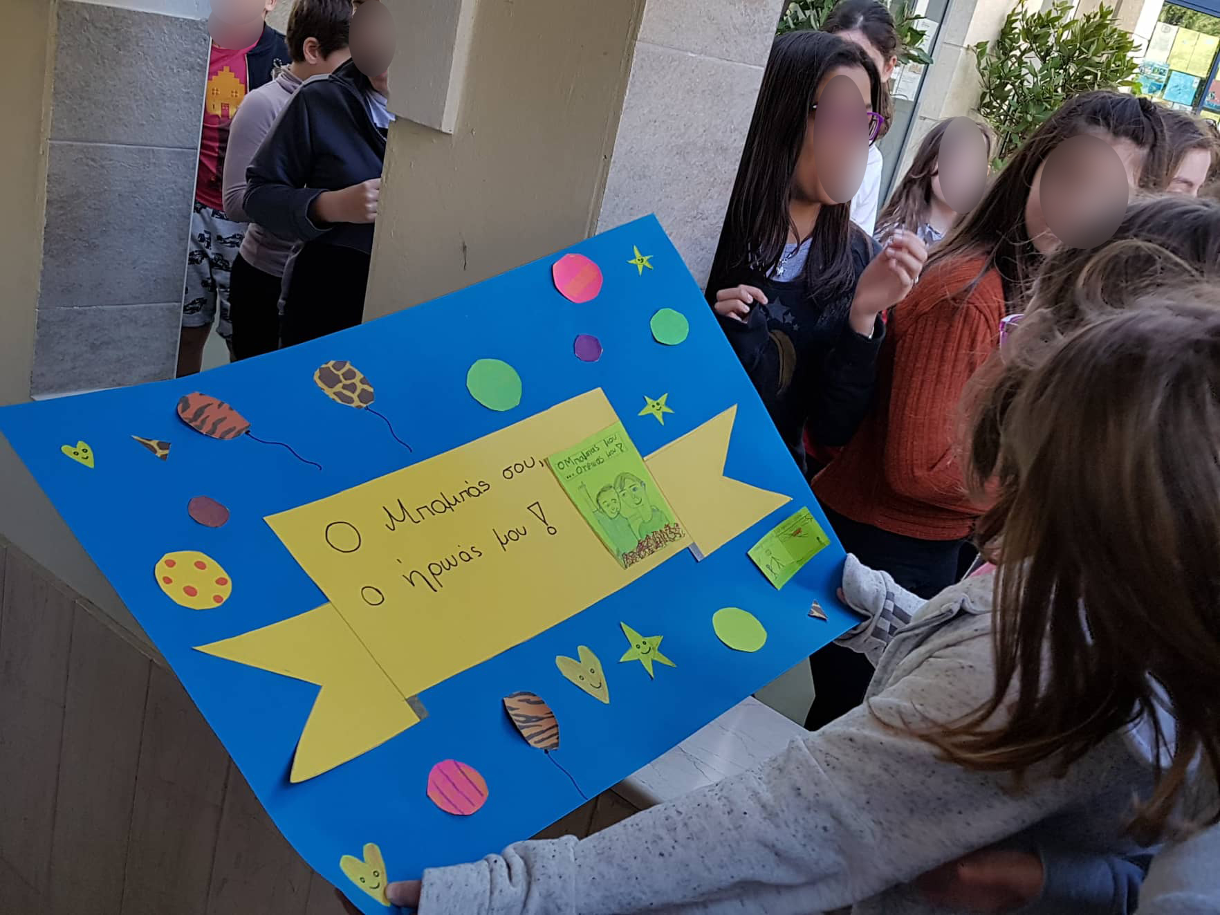 Με αφορμή την Ημέρα Παιδικού Βιβλίου επισκέφτηκε το Σχολείο μας ο συγγραφέας Παναγιώτης Δημητρόπουλος. Οι μαθητές με τους εκπαιδευτικούς τους τις προηγούμενες ημέρες διάβασαν, συζήτησαν και αξιοποίησαν σε βιωματικές δράσεις τα βιβλία του συγγραφέα «Το χρυσαφένιο κουκούτσι» για μαθητές Α’ και Β’ δημοτικού και «Ο μπαμπάς μου ο ήρωάς μου» για μαθητές Γ’ έως και Στ’ δημοτικού. Κατά την επίσκεψη του συγγραφέα ανταλλάξαμε ιδέες και, μέσα από πλούσιες δραστηριότητες ενσυναίσθησης και διαχείρισης των συναισθημάτων μας, μοιραστήκαμε τις σκέψεις μας και θέσαμε τις ερωτήσεις μας στον συγγραφέα, με τον οποίο επεξεργαστήκαμε όλα τα νοήματα των βιβλίων.