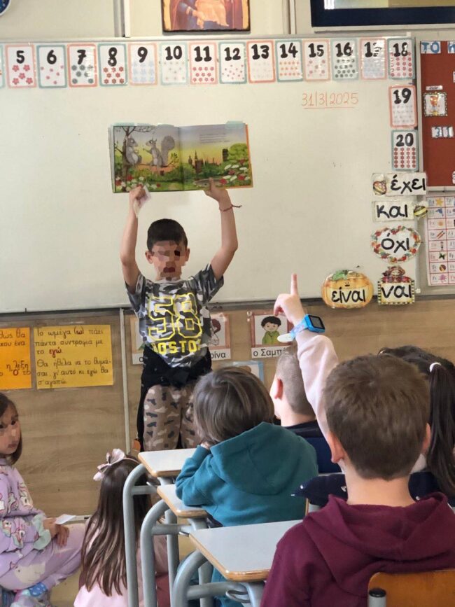 Τα υποδεχτήκαμε με χαρά στην τάξη μας, τους διαβάσαμε αγαπημένα παιδικά βιβλία και μιλήσαμε όλοι μαζί για τις ιστορίες, τα συναισθήματα και τα όνειρα που γεννιούνται μέσα από την ανάγνωση.