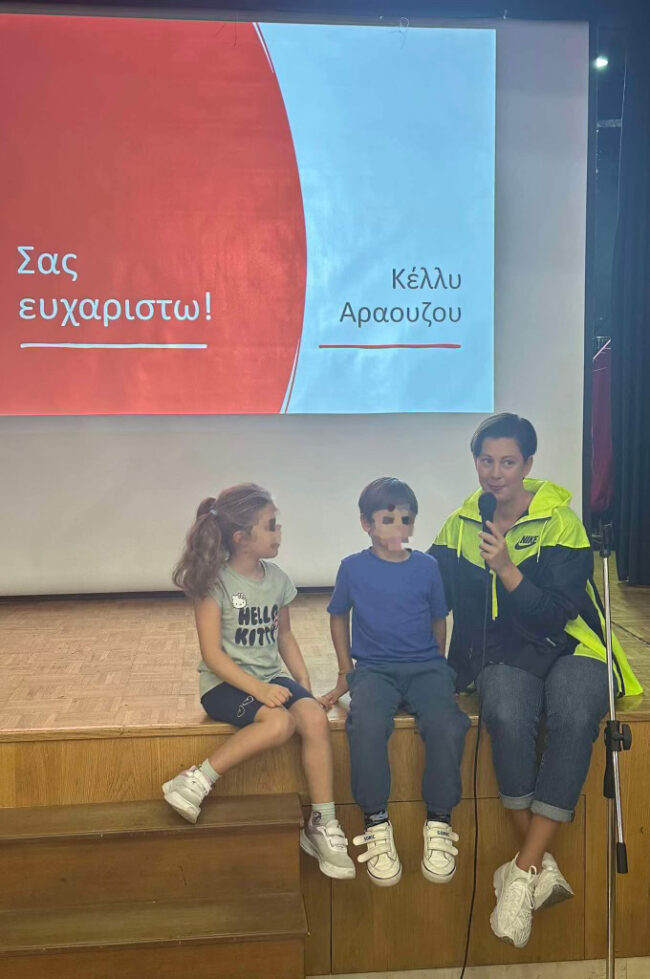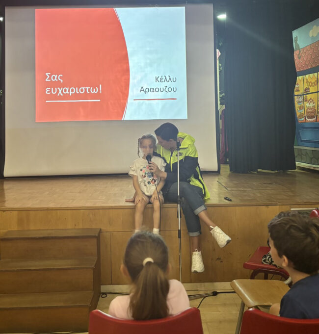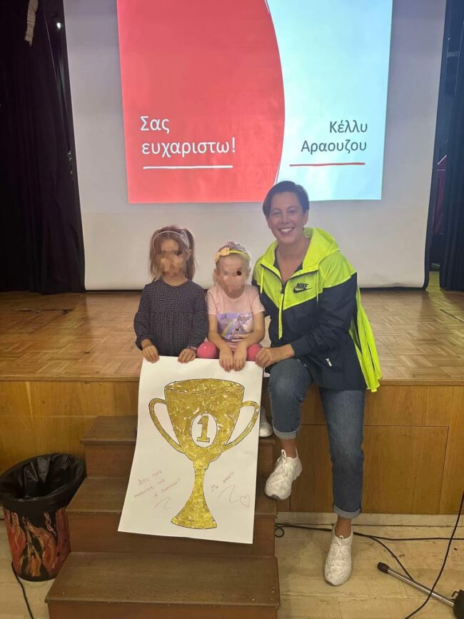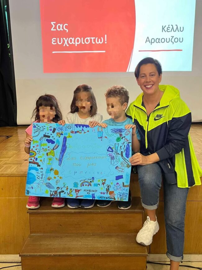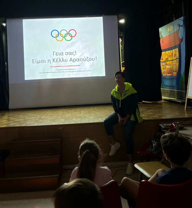 Στο πλαίσιο των δράσεων του Σχολείου μας για την Πανελλήνια Ημέρα Σχολικού Αθλητισμού, οι μαθητές και οι μαθήτριες της Α’ και Β’ Δημοτικού, είχαν τη χαρά και την τιμή να υποδεχτούν την Παγκόσμια Πρωταθλήτρια κολύμβησης  Κέλλυ Αραούζου.