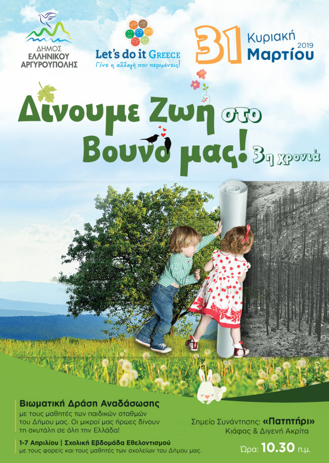 Το Σχολείο μας συμμετέχει στην Πανελλήνια Περιβαλλοντική Δράση «Let’s do it Greece 2019» που θα πραγματοποιηθεί την Κυριακή 31 Μαρτίου στον Υμηττό.