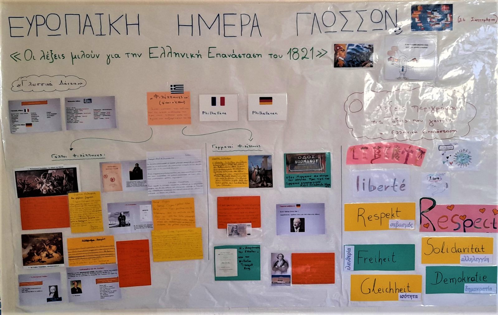 Με ποικίλες δράσεις που σχεδιάστηκαν από τις Εκπαιδευτικούς Αγγλικής, Γαλλικής και Γερμανικής Φιλολογίας του Δημοτικού Σχολείου των Εκπαιδευτηρίων μας και υλοποιήθηκαν σε όλα τα τμήματα, γιορτάσαμε την Πανευρωπαϊκή Ημέρα Ξένων Γλωσσών μαζί με τους Μαθητές και τις Μαθήτριές μας. Σε αυτό το «μικρό φεστιβάλ» τα παιδιά ενημερώθηκαν για τη συγκεκριμένη ημέρα, έπαιξαν παιχνίδια, δημιούργησαν τις δικές τους αφίσες, ενημερώθηκαν για τον πολιτισμό και την κουλτούρα άλλων χωρών και συμμετείχαν σε πρωτότυπα project. Ταξιδέψαμε σε μέρη μακρινά με όχημα τις λέξεις, τις φράσεις, τις εικόνες, τα χαμόγελα… και ανανεώνουμε το ραντεβού μας για το επόμενό μας ταξίδι…