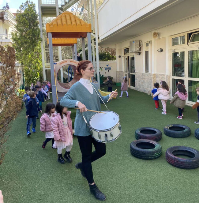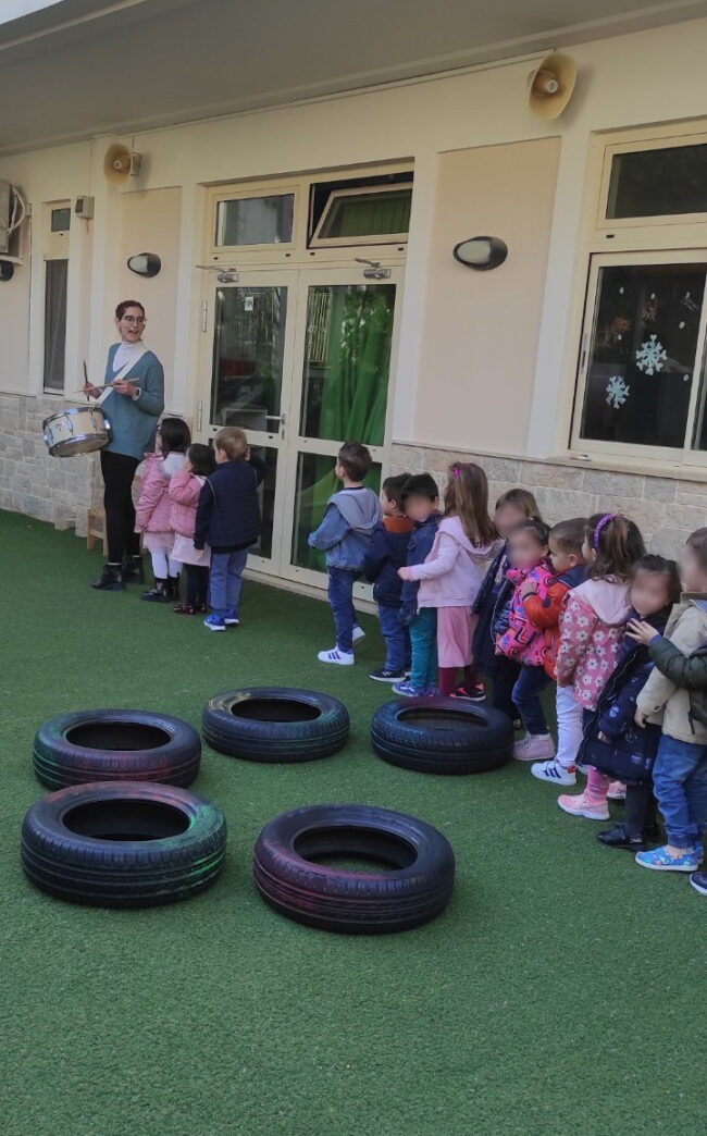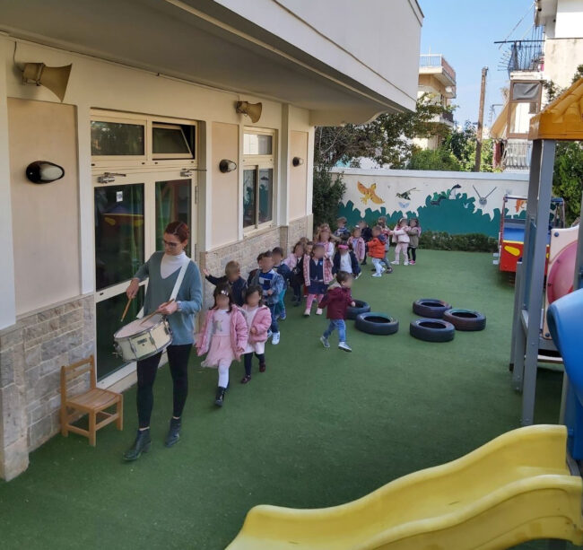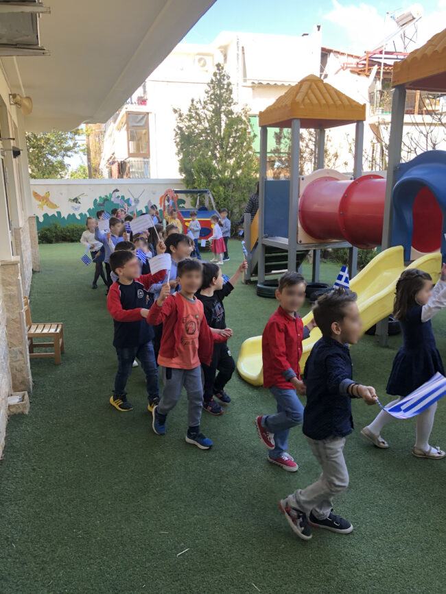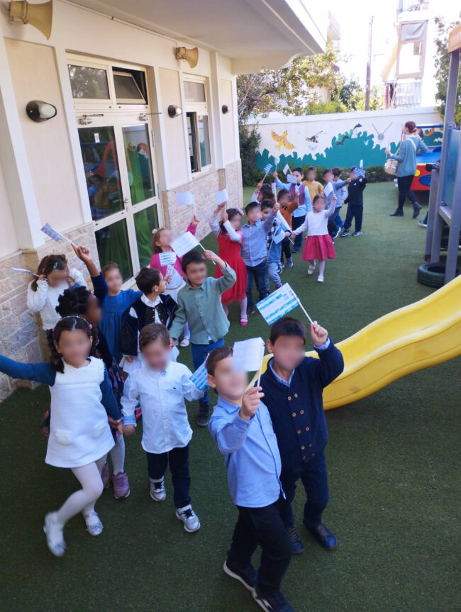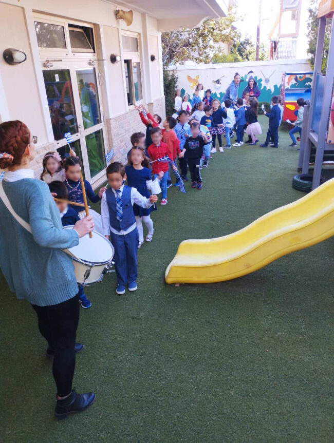 Η δασκάλα των Αγγλικών, κυρία Χριστίνα, έδωσε τον ρυθμό στους μικρούς μας μαθητές και εκείνοι παρέλασαν τιμώντας την πατρίδα μας.