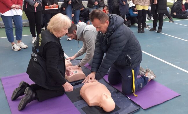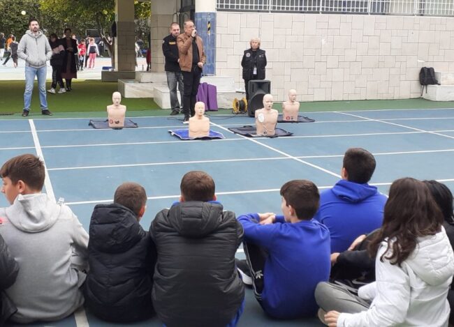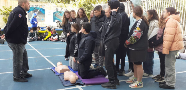Τη Δευτέρα 27 Νοεμβρίου ολοκληρώθηκε η 2η φάση επιμόρφωσης και πιστοποίησης των μαθητών και εκπαιδευτικών του Γυμνασίου στις Πρώτες Βοήθειες και τη διαδικασία Καρδιοαναπνευστικής αναζωογόνησης (ΚΑΡΠΑ) με την καθοδήγηση και τη βοήθεια των υπευθύνων διασωστών του Ινστιτούτου Διαχείρισης Ανθρωπογενών Καταστροφών της Υπηρεσίας Πολιτικής Προστασίας. Τα παιδιά και οι συνάδελφοι εκπαιδεύτηκαν πάνω στις βασικές οδηγίες διαχείρισης περιστατικών που χρήζουν ανάγκης (Πνιγμονή, απώλεια αισθήσεων, Πρώτες Βοήθειες κ.α) και έκαναν πρακτική εφαρμογή σε ανθρώπινα ομοιώματα, υπό την καθοδήγηση των διασωστών. Σε όλους τους συμμετέχοντες θα χορηγηθεί πιστοποίηση επιμόρφωσης. Γιατί η γνώση και η ενημέρωση σώζει ζωές!