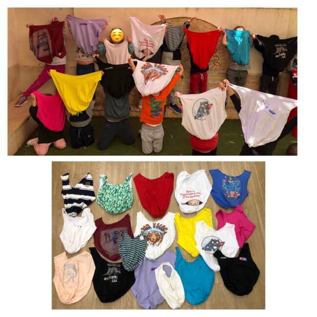 Μεταμορφώσαμε τα μεγάλα μπλουζάκια του μπαμπά και της μαμάς σε υπέροχες υφασμάτινες τσάντες και μέσα σε αυτές θα μεταφέρουμε καθ’ όλη τη διάρκεια της σχολικής χρονιάς τα βιβλία της Δανειστικής Βιβλιοθήκης.