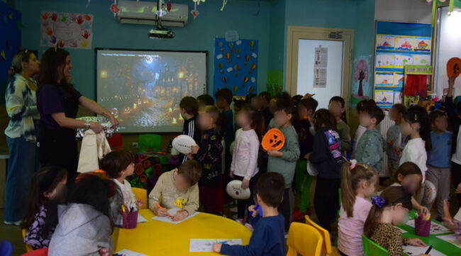 Πριν λίγες μέρες με συντονίστρια την Δρ Φωτεινή Σπαντιδάκη Κυριαζή (Κλινική & Αναπτυξιακή Ψυχολόγο) πραγματοποιήθηκε στην Προσχολική Αγωγή μέρος της δράσης «re-imagine». Αξιοποιώντας την επικαιρότητα και με προσεκτικά επιλεγμένα στοιχεία ενός εθίμου (Halloween) που, πλέον, γνωρίζουν τα παιδιά, προσεγγίσαμε το τι σημαίνει φόβος: Πώς μας κάνει να νιώθουμε στο σώμα και στην ψυχή μας; Πώς μπορούμε να κάνουμε τον φόβο «φίλο» και να παίξουμε μαζί του;