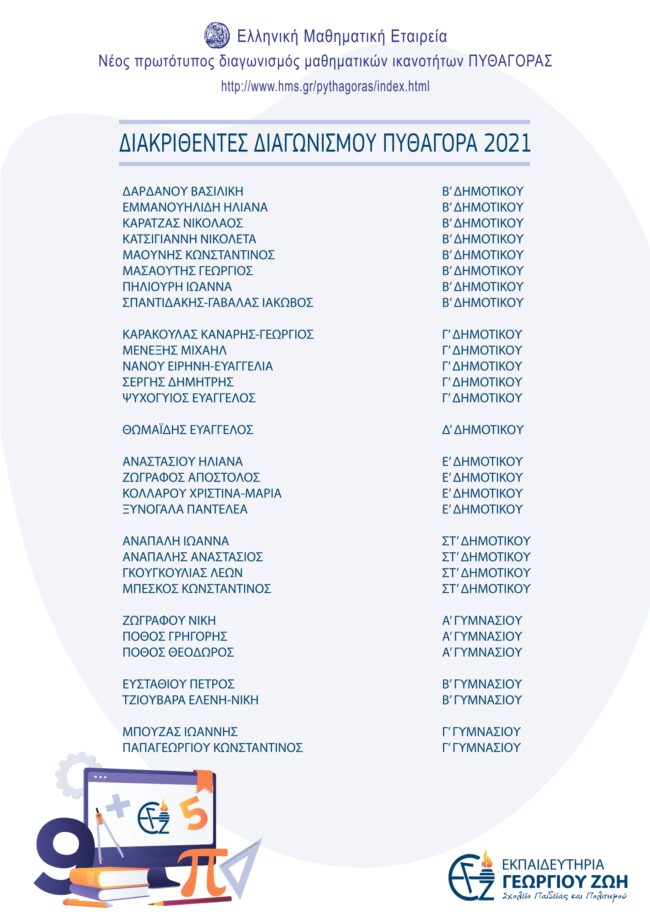 Σημαντική διάκριση στον διαγωνισμό Πυθαγόρα