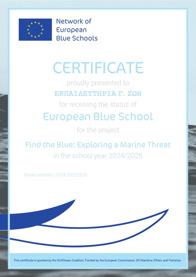 Τα Εκπαιδευτήρια μας έλαβαν το Πιστοποιητικό Ευρωπαϊκού Μπλε Σχολείου