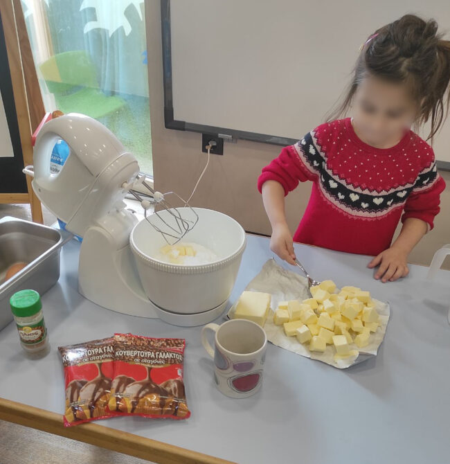 Τα παιδάκια του Παιδικού σταθμού του Σχολείου μας φόρεσαν τις ποδιές τους, και με τα χεράκια τους για βοηθούς μεταμορφώθηκαν σε μικρούς chef! Ώρα για “μπισκομαγειρέματα”!