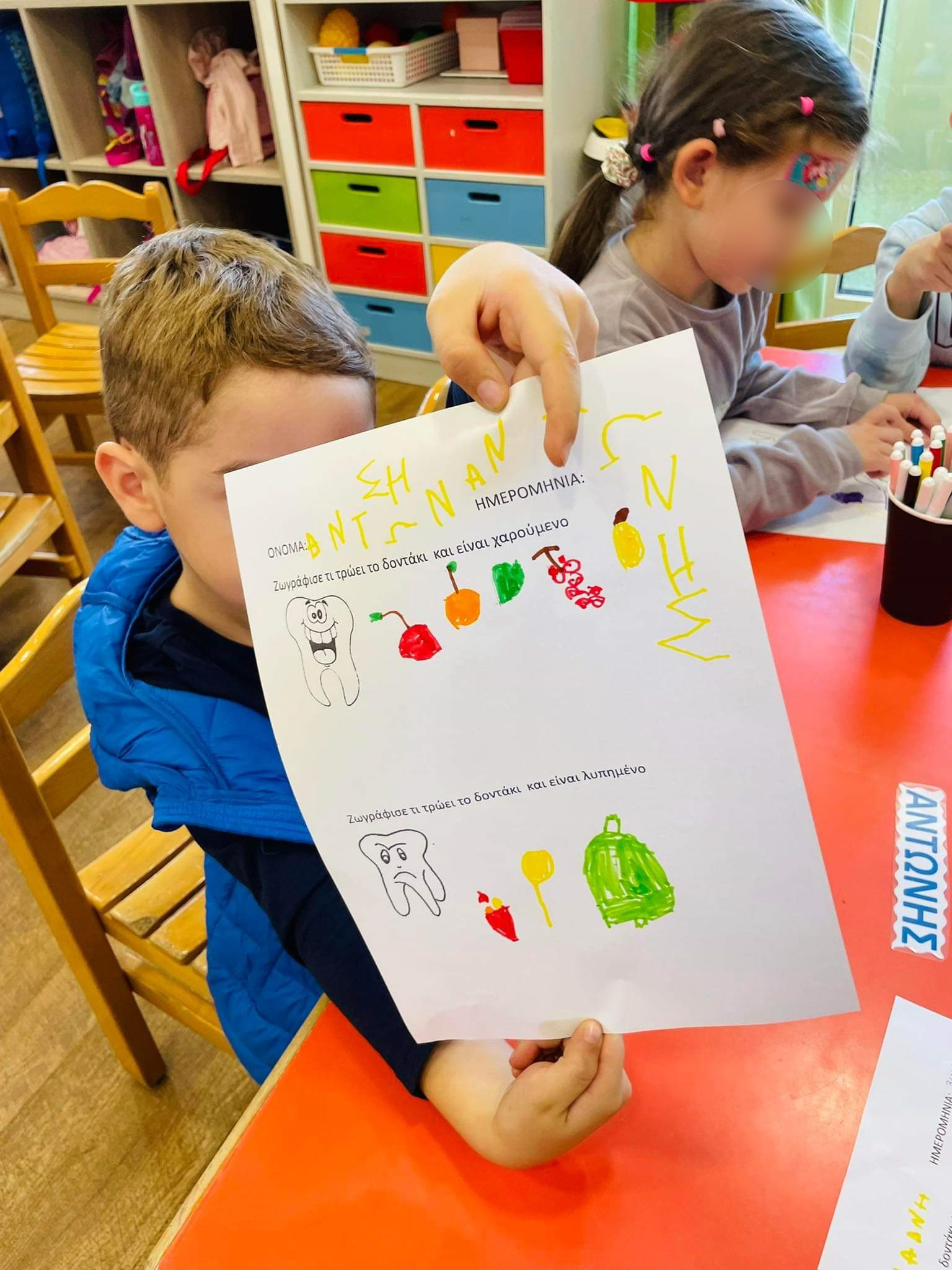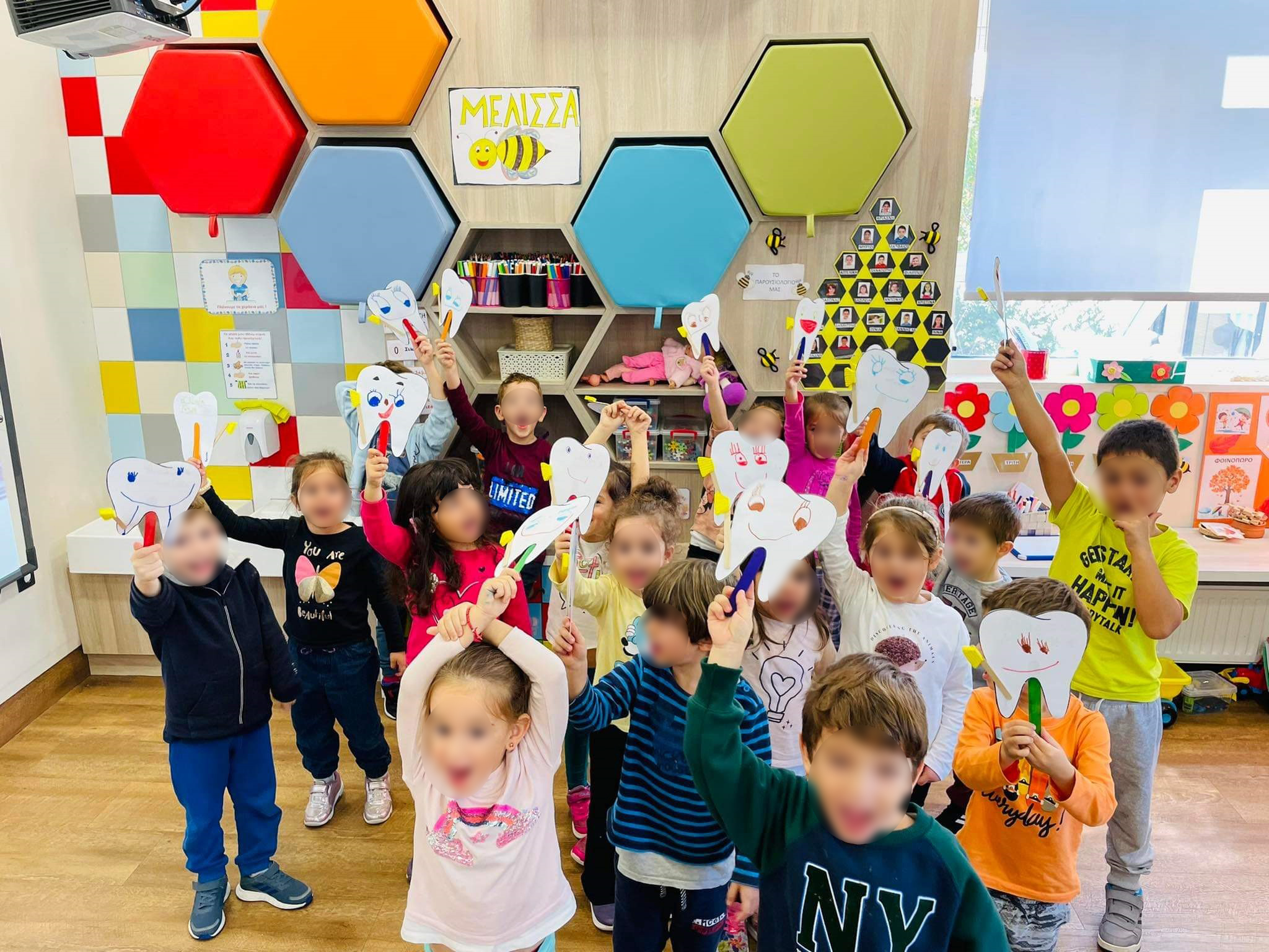 Μια απρόσμενη επίσκεψη είχαν στις τάξεις τους τα Προνηπιάκια μας αυτή την εβδομάδα. Δυο πονηρά μικροβιάκια, ο “Σοκολάκης” και η “Ζαχαρούλα Τρυποδόντη” μας έδειξαν τι συμβαίνει στο στόμα μας, όταν δεν πλένουμε τα δόντια μας. Έτσι, τα Λαγουδάκια και τα Μελισσάκια μεταμορφώθηκαν σε “οδοντοκαθαριστές”, αντιμετώπισαν γενναία τη “Δόνα Τερηδόνα” στο στόμα των παιδιών, έμαθαν τον τρόπο να διώχνουν τα μικρόβια, αλλά και τους κανόνες της στοματικής υγιεινής.