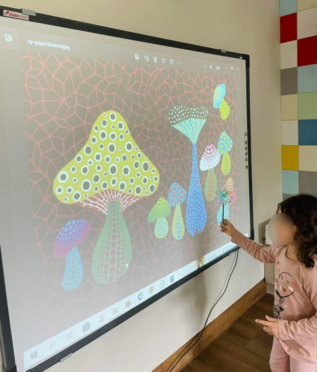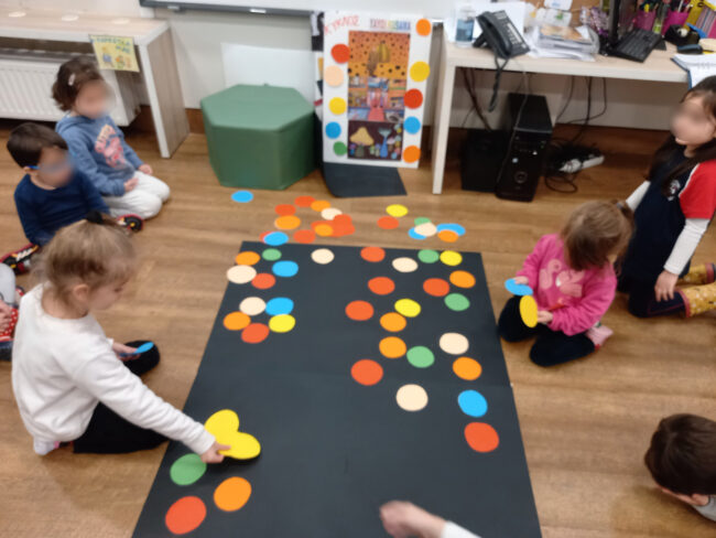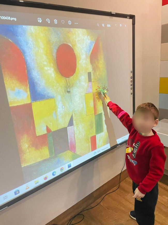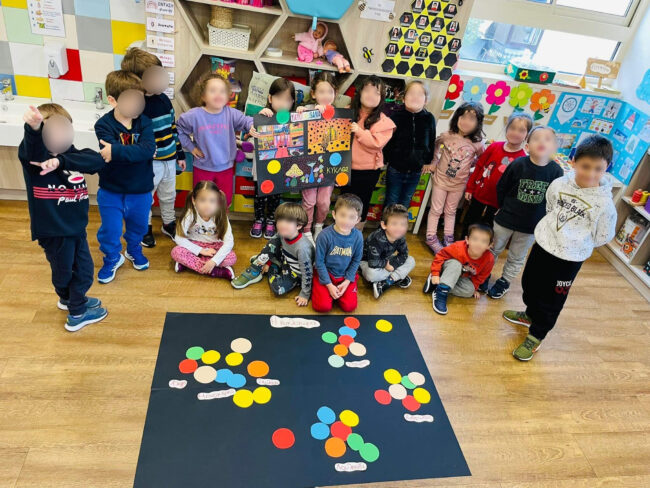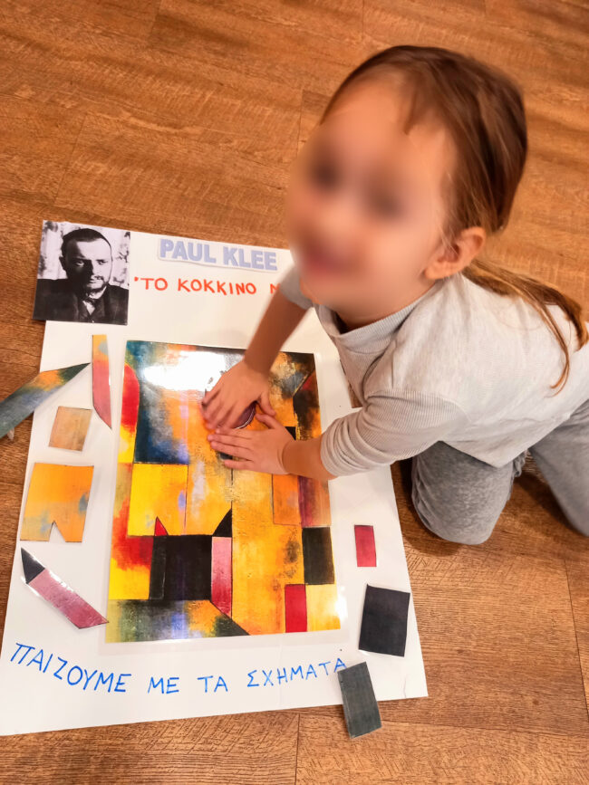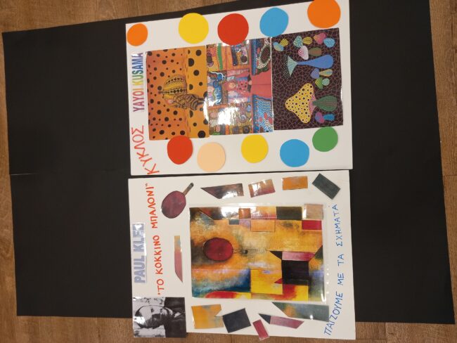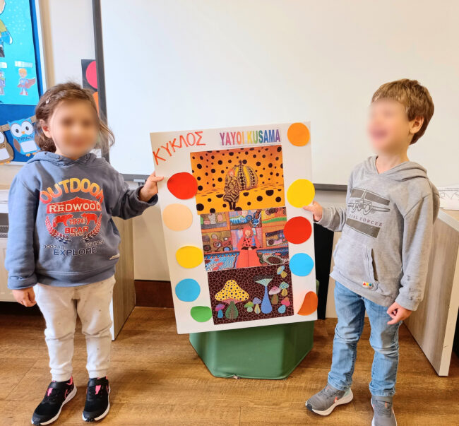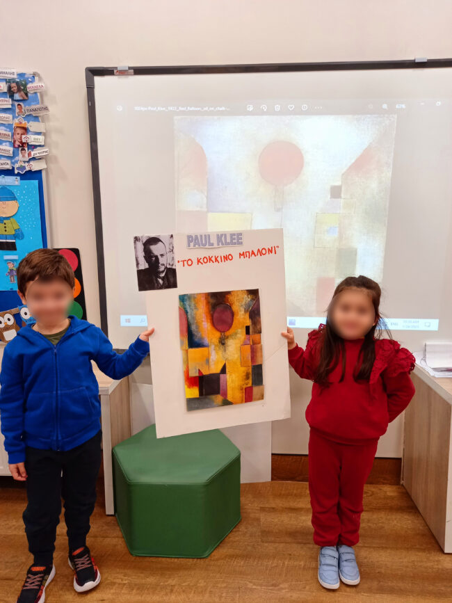 Tα Προνηπιάκια μας ταξίδεψαν στη «Σχηματοχώρα» μέσω της Τέχνης παρατηρώντας και παίζοντας με πίνακες του “Paul Klee” και της “Yayoi Kusama”. Έτσι, γνώρισαν τα σχήματα μέσα από τον πίνακα «Το κόκκινο μπαλόνι» του Klee και τους περίφημους κύκλους των έργων της Kusama.