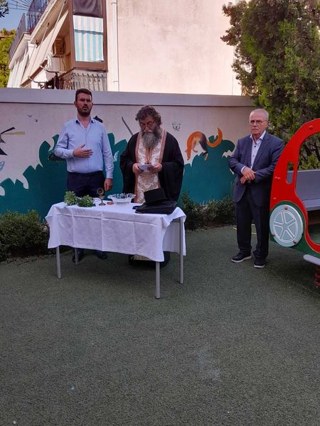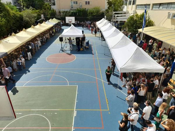 Εκπαιδευτικοί, μαθητές, γονείς συγκεντρώθηκαν στον προαύλιο χώρο κατά τη τελετή του Αγιασμού, καλωσορίζοντας τη νέα σχολική χρονιά με χαμόγελα και τις καλύτερες ευχές για μια δημιουργική χρονιά!