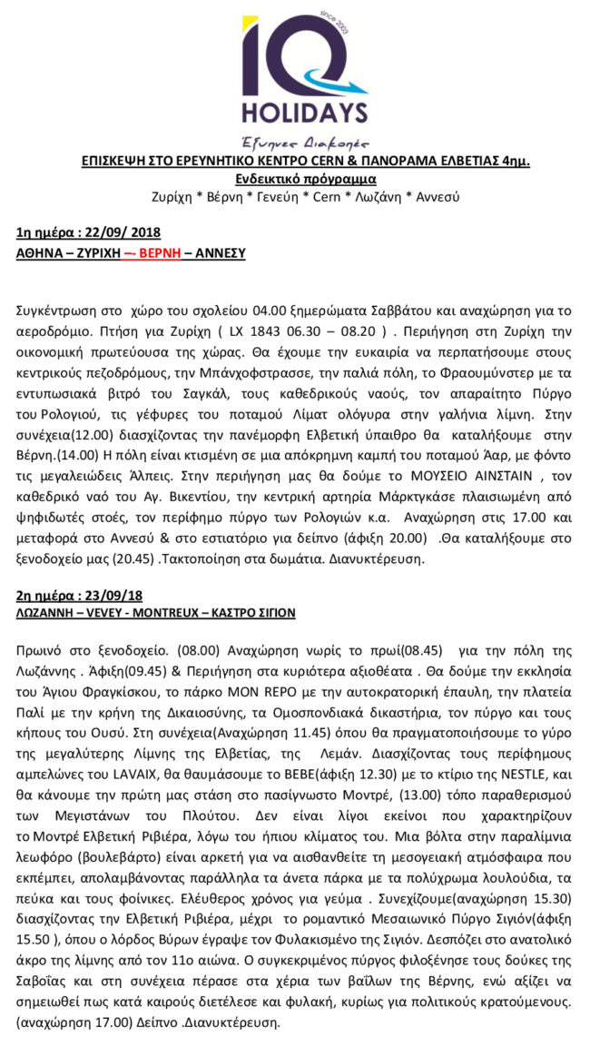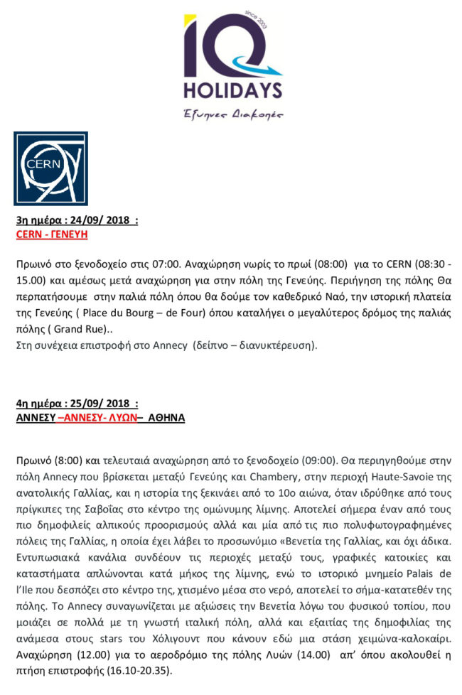 Τελικό πρόγραμμα εκδρομής στο CERN